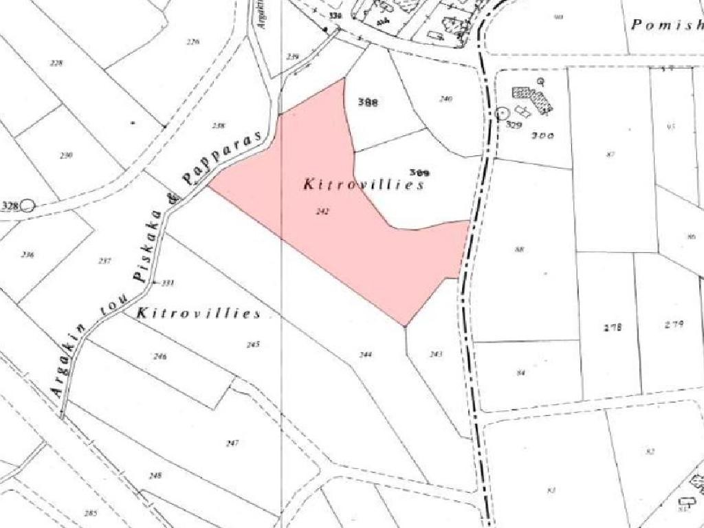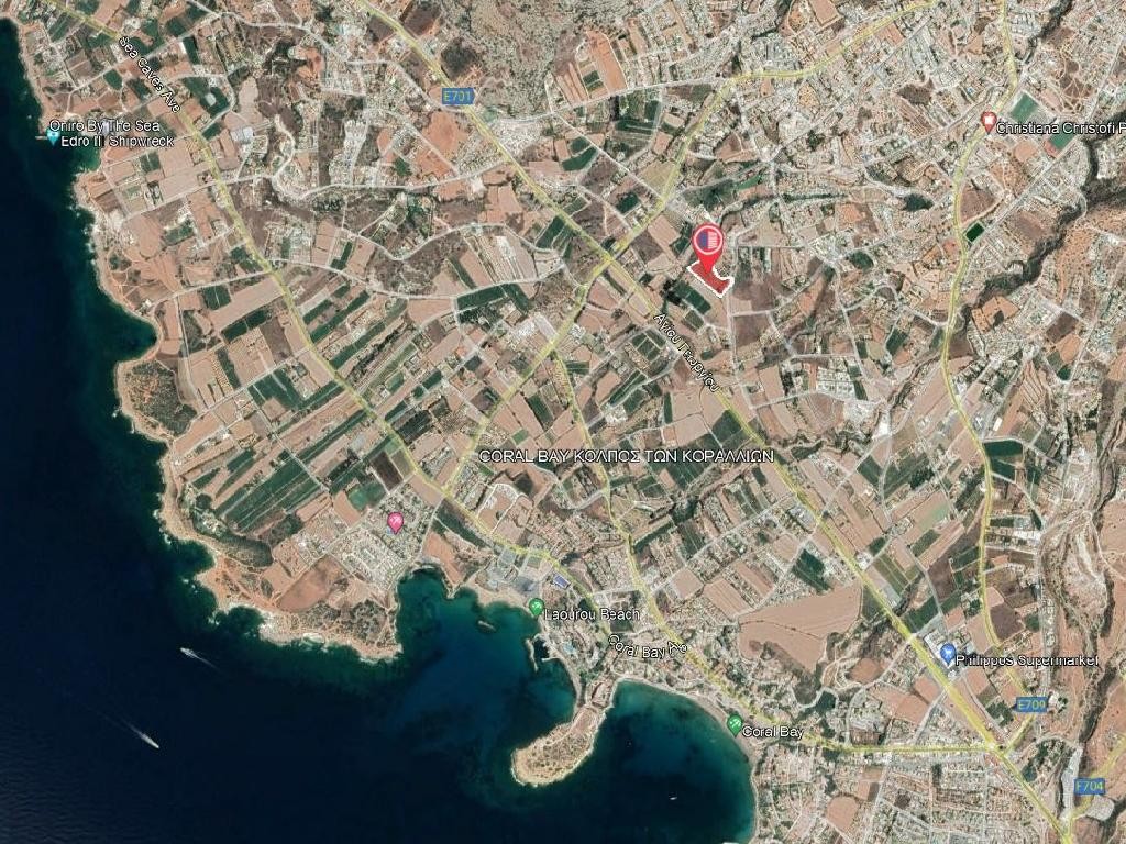 Available for sale is the ½ northwest share of a field which is approximately 6,145sqm, in Pegeia Municipality of Paphos District. The property falls within local consolidation area and it is located 1.4 kilometers (approx.) southwest of Pegeia municipal Stadium and 1.7 kilometers (approx.) north of Agios Georgios Avenue. It is noted that the property is located approximate 1.5km away of Coral Bay beach.