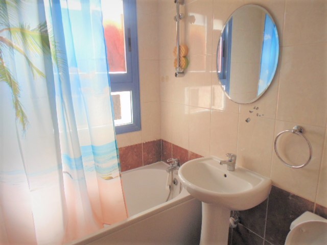 The apartment is on the ground level and comprises open plan living & dining area with patio doors leading to a private covered veranda and fully fitted and equipped kitchen. Family bathroom and 1 double bedroom with fitted wardrobes and A/C conclude the property.