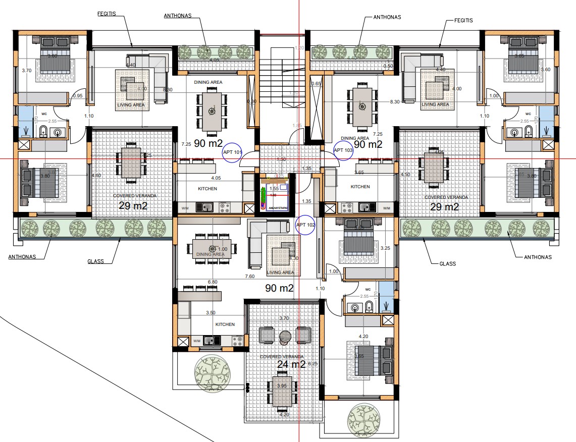 b) Two bedrooms apartment 85 m2 starting from €220,000 + VAT with allocated garden 12m2