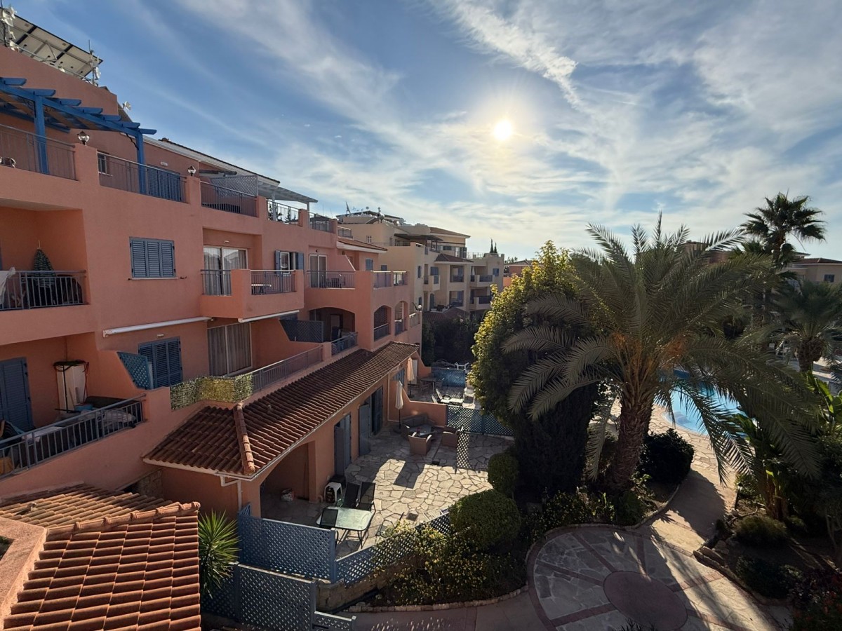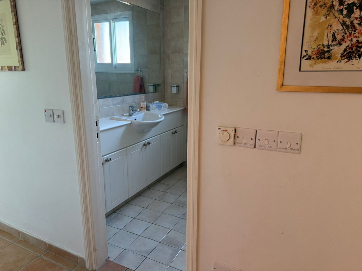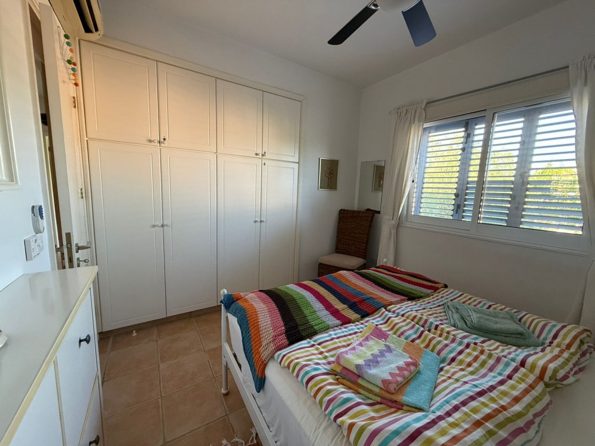 This third floor apartment has a spacious lounge, dining room and open plan kitchen leading out to the balcony. The apartment faces the pool and park area. Here you can enjoy the relaxing atmosphere Paphos has to offer. All the bedrooms are spacious, have large floor to ceiling wardrobes, ceiling fans and air conditioning in each room.