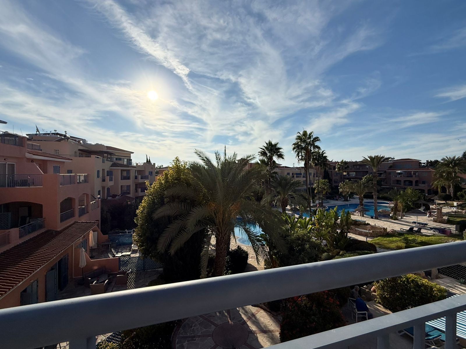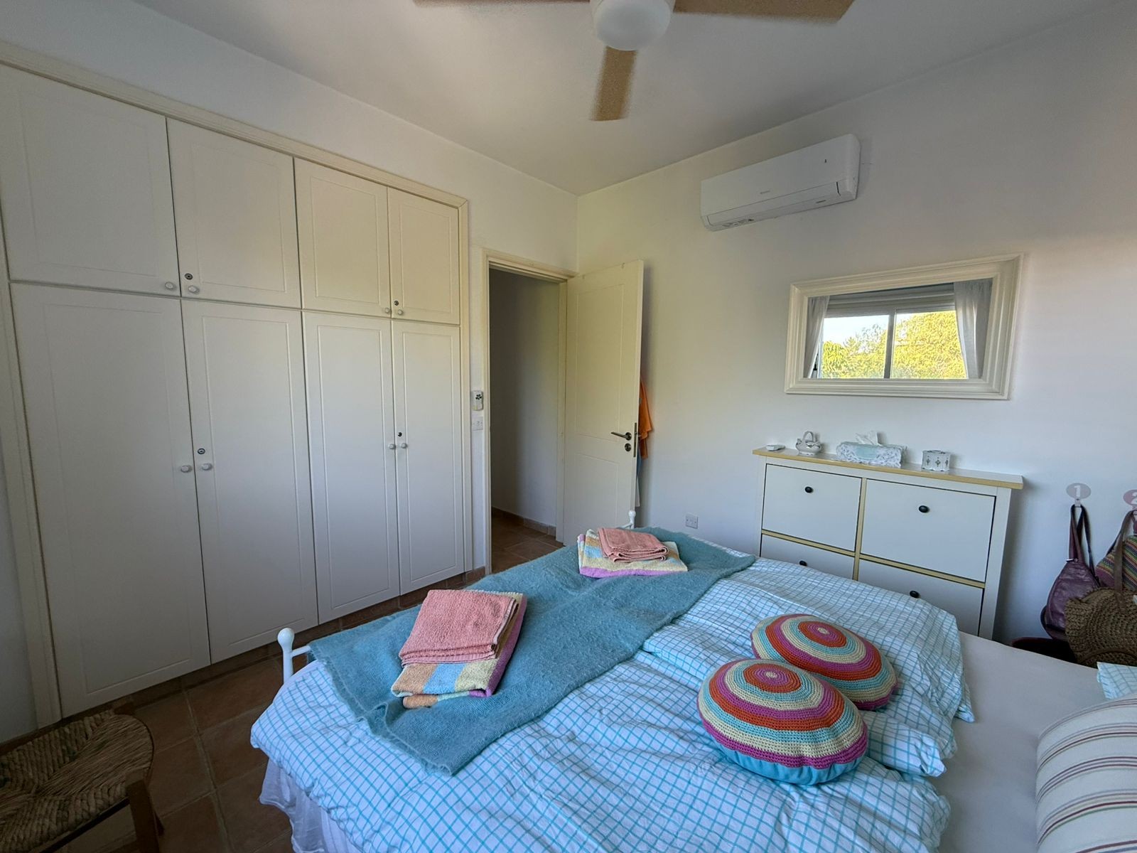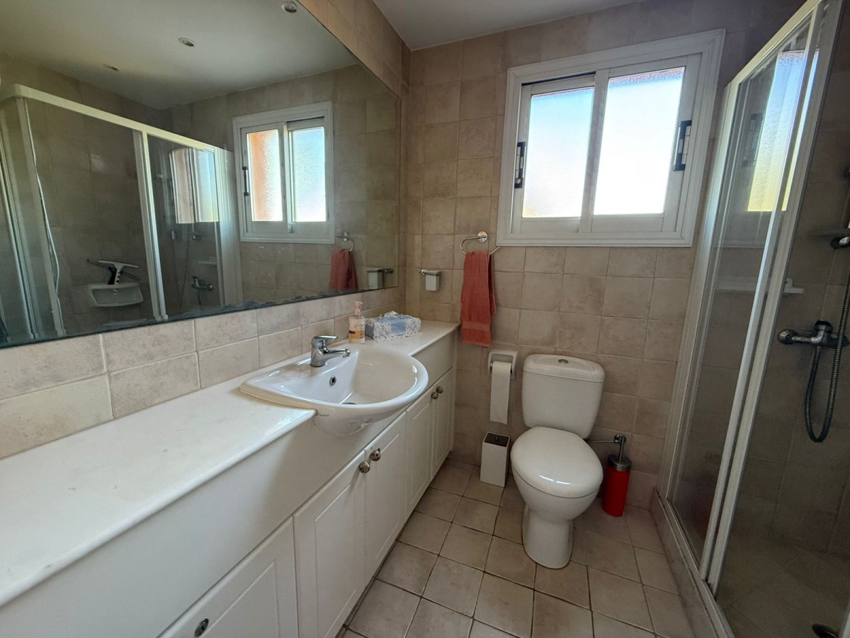 This third floor apartment has a spacious lounge, dining room and open plan kitchen leading out to the balcony. The apartment faces the pool and park area. Here you can enjoy the relaxing atmosphere Paphos has to offer. All the bedrooms are spacious, have large floor to ceiling wardrobes, ceiling fans and air conditioning in each room.