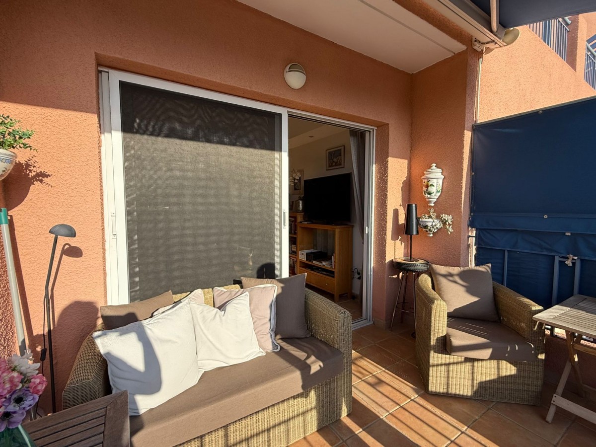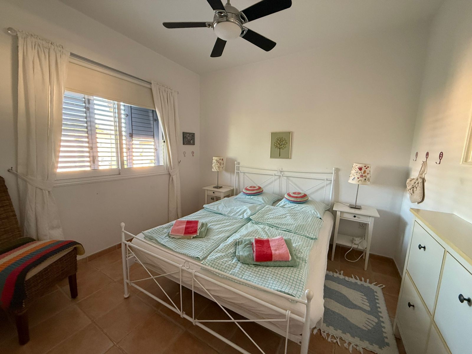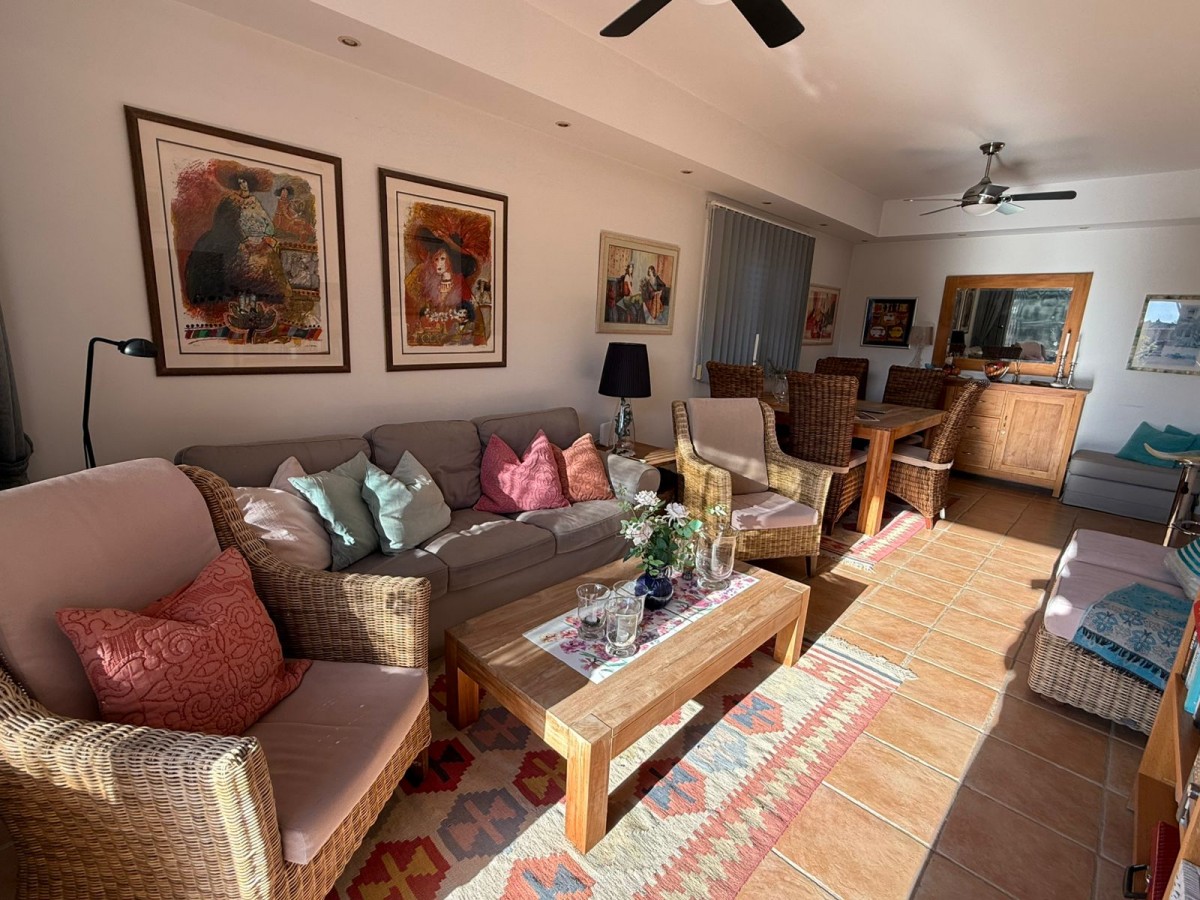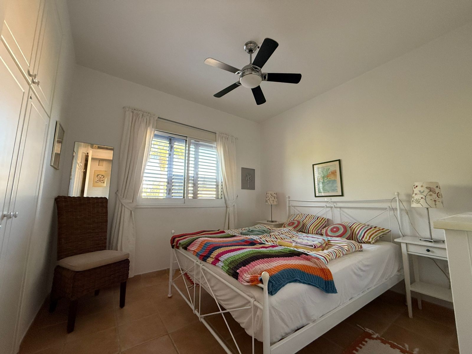 Living room with integrated kitchen separated by bar counter, 3 double bedrooms with ceiling fans, 1 bathrooms, 1 shower, new air conditioning, double glazing, external shutters, communal parking and large, communal swimming pool, fully furnished and equipped, and also has a spacious and furnished terrace.
