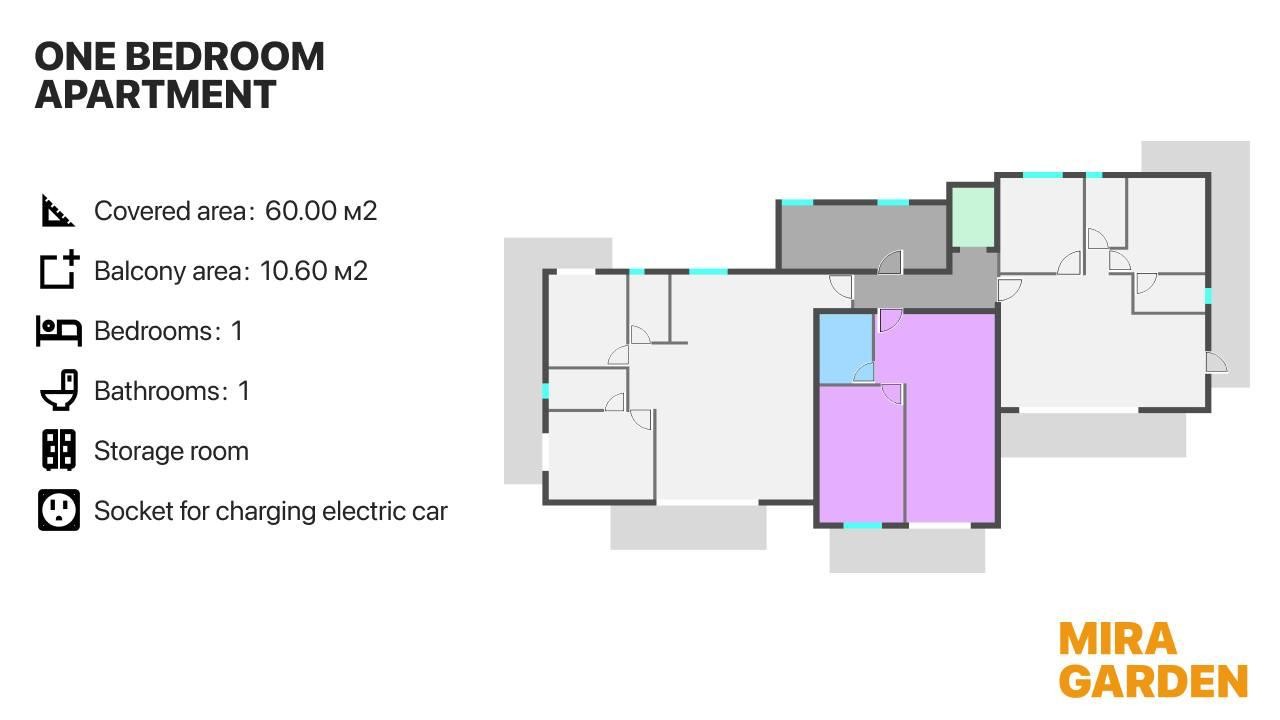 For sale 1-bedroom apartment: The apartment has 1 bedroom with a covered area of 62 m². It also features 1 bathroom, a balcony of 11 m², and storage on the ground floor. The building includes an elevator and parking space. Additionally, the apartment features heated floors and air conditioning system.