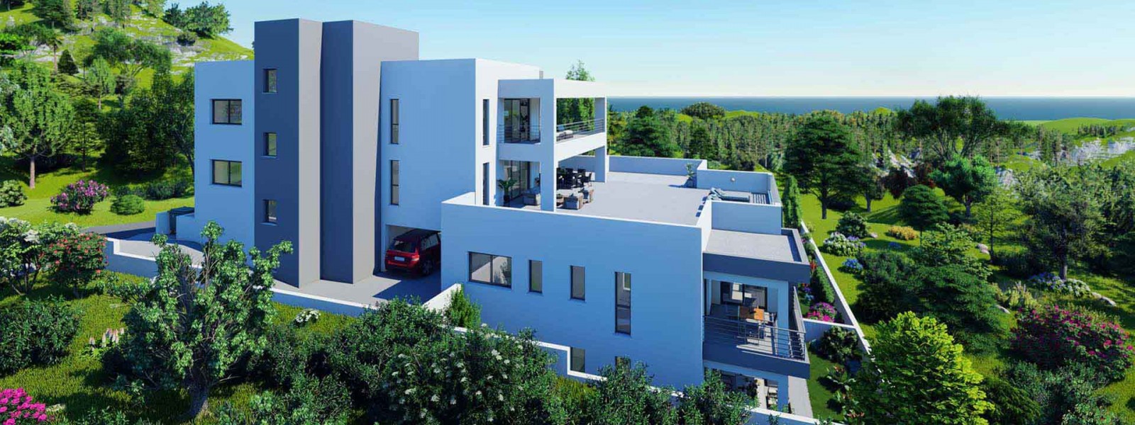 Primrose Seaview apartments in Paphos consists of three 2-bedroom and three 3-bedroom spacious apartments. All apartments enjoy their own covered verandas and covered parking area. Apartment No. 1 also enjoys its own private swimming pool.
