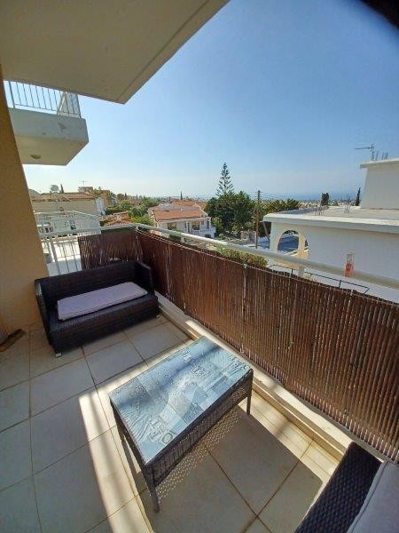 It is located on the second floor, accessible via stairs. Interior comprises from the entrance into an open plan living & dining area with direct access to a covered veranda with sea views. The kitchen is fully fitted and equipped. Two double bedrooms, both with fitted wardrobes and a family bathroom conclude the property. The master bedroom has en suite shower facilities.