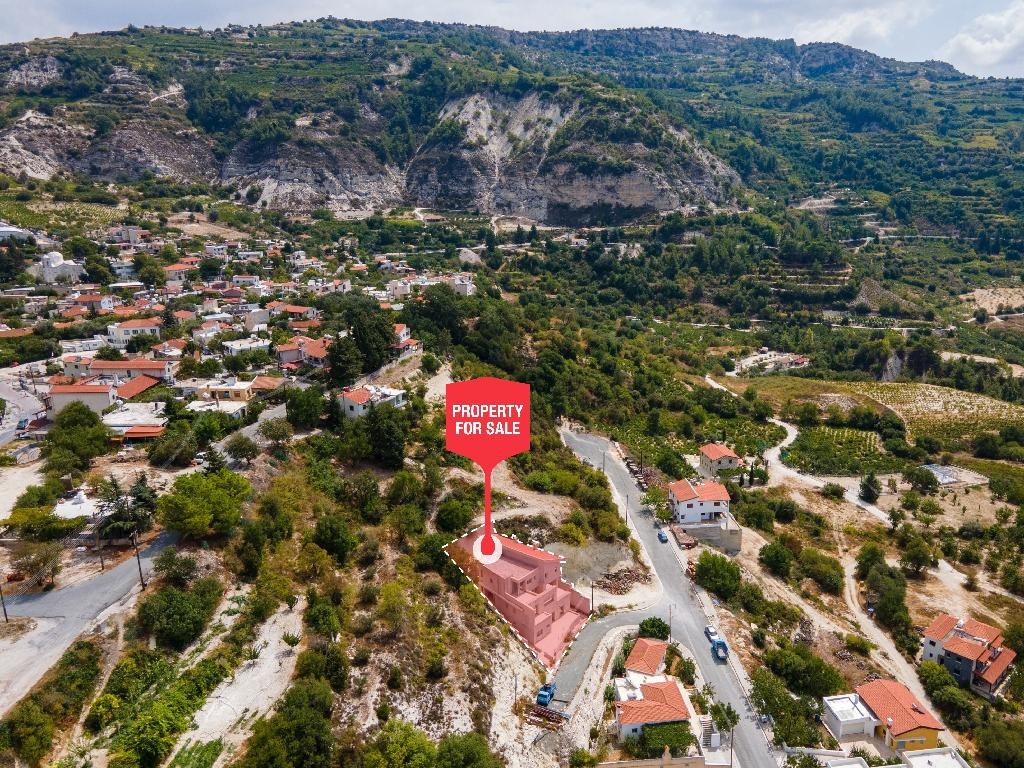 The property for sale is an incomplete residential building which lies within the administrative boundaries of Pano Panagia village, in Paphos District. It is located in 'Siriza' locality, approximately 150m. east of the central square of the community and about 150m. southeast of Vouni-Panagia winery. The building is located on a hill, has unobstructed view to the surrounding area and comprises of a ground floor house and an upper level duplex house.