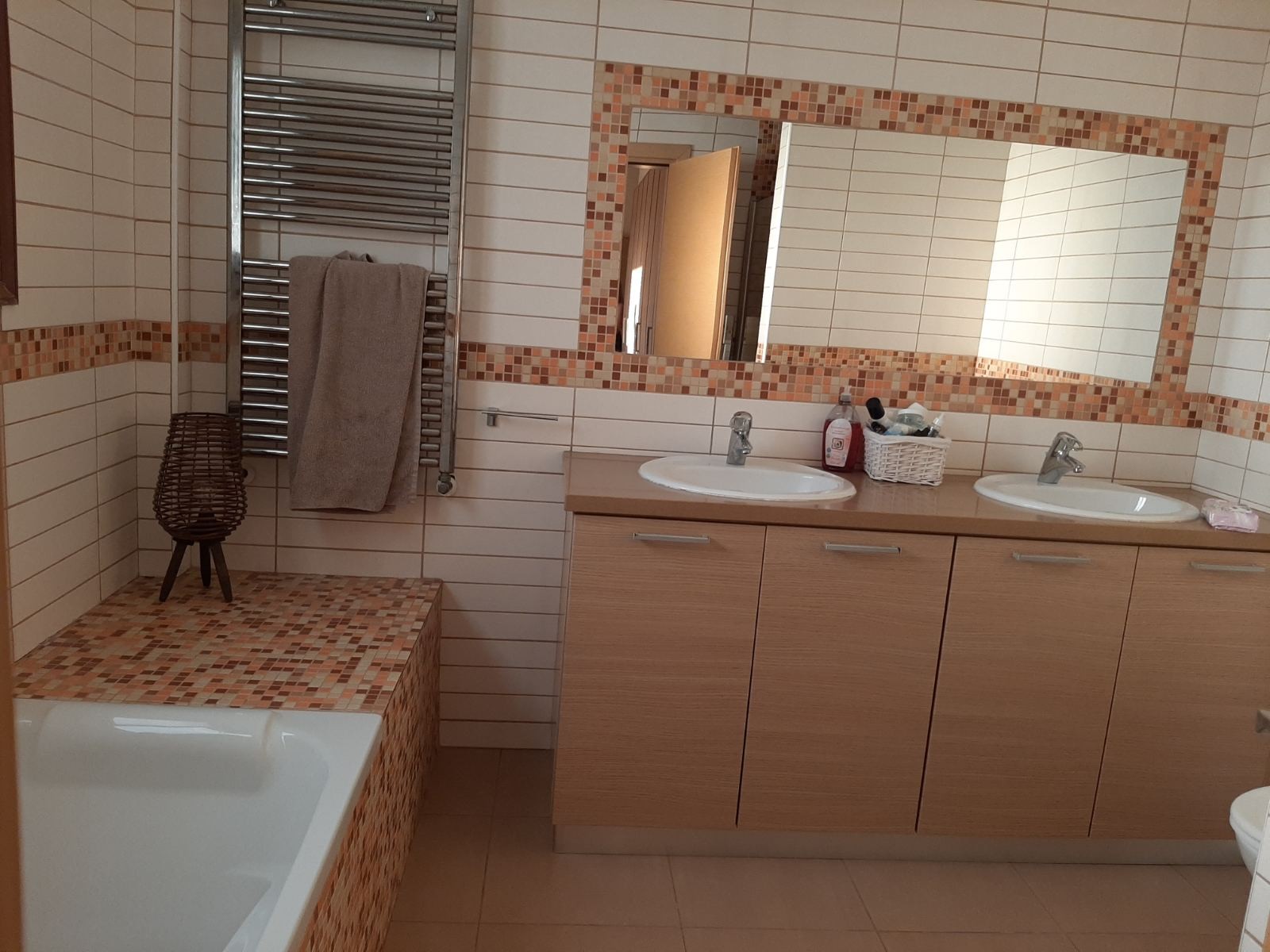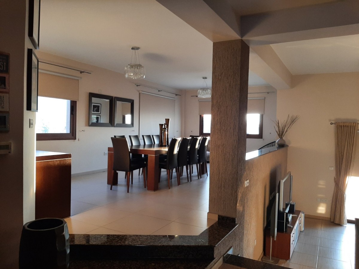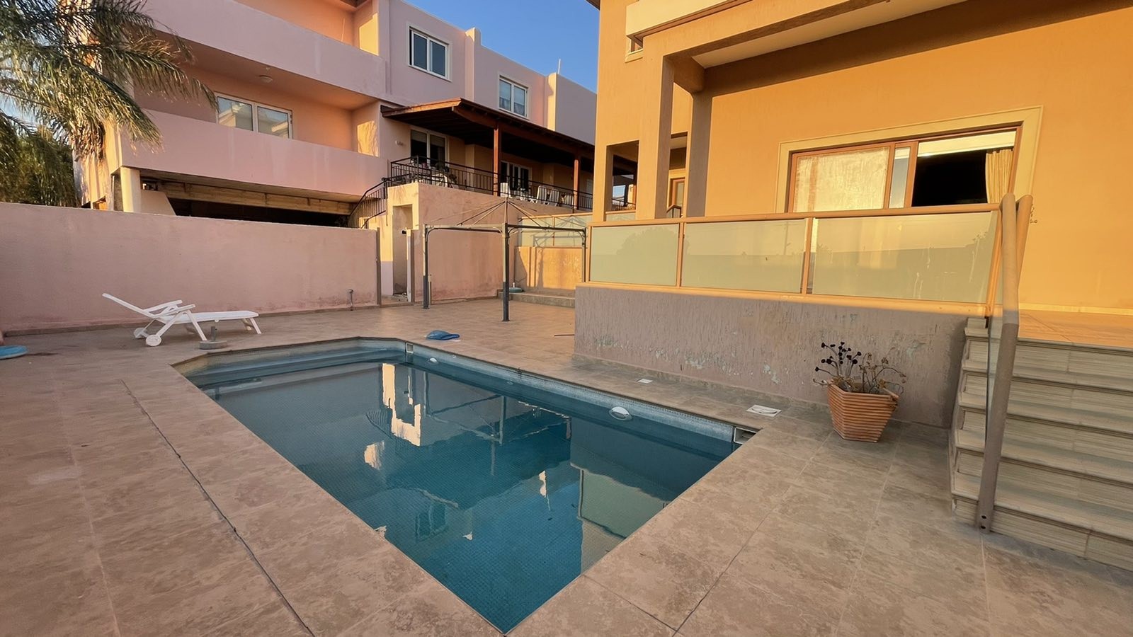 This four bedroom villa is conveniently located in Empa Paphos - in a few minutes drive to the Paphos city centre, close to all the services, schools and other amenities of the centre. This spacious villa features separated kitchen and a kitchenette on the ground floor, a large open plan living & dining area and a guest WC. On upper floor it has 4 bedrooms, 1 family bathroom and the main bedroom offers an en suite bathroom. There is also a storage room and laundry room. Large patio of the lounge and dining area leads out to the generous veranda and gives direct access to the private swimming pool. Covered parking for two cars.