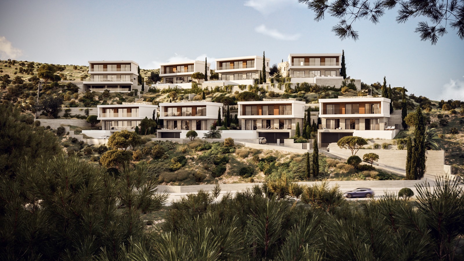 This exclusive development is situated in a green landscape of Minthis - Episkopi Paphos. The project is a new development in the beautiful outskirts of Minthis-Episkopi Paphos. The project consists of 10 amazing sea&mountain view villas ranging from 3-4 bedrooms, all with private swimming pools in very close proximity to a variety of facilities such as Golf club course, restaurant, bar, Spa and hotel. Excellent location allowing the owner to enjoy the fresh clean air and the privacy. Innovative design from our team always with respect to the environment, using of Hight quality sustainable materials with an energy class A certificate from the relevant authorities.