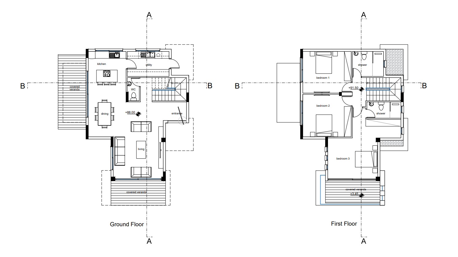 The modern architectural design of the houses blends seamlessly the structure with the natural surrounding and provide a harmonious access between the interior and exterior areas, maximising the usable space.