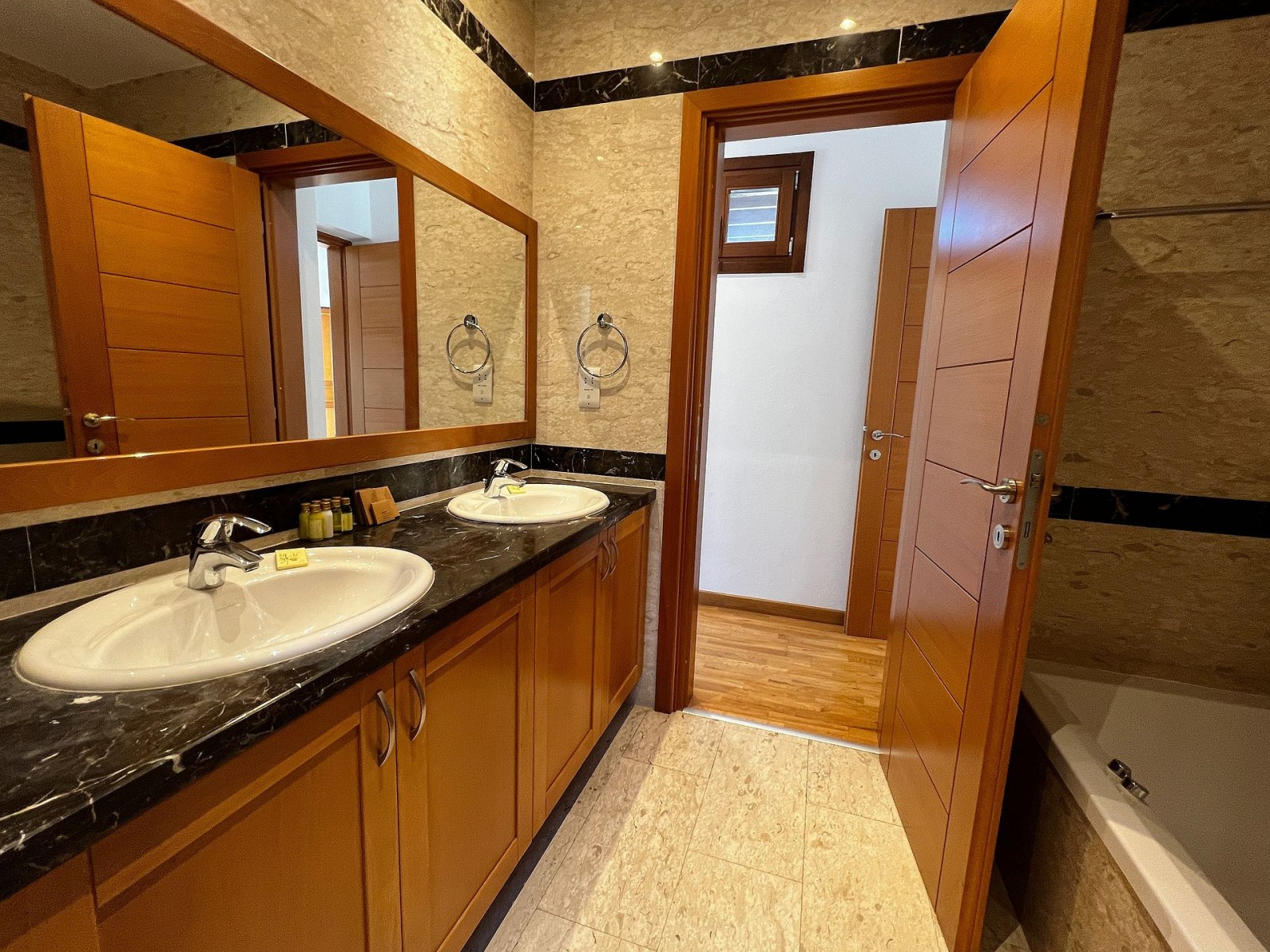 The property also offers a landscaped garden and a private swimming pool.