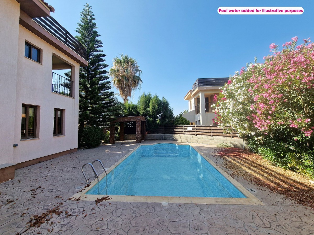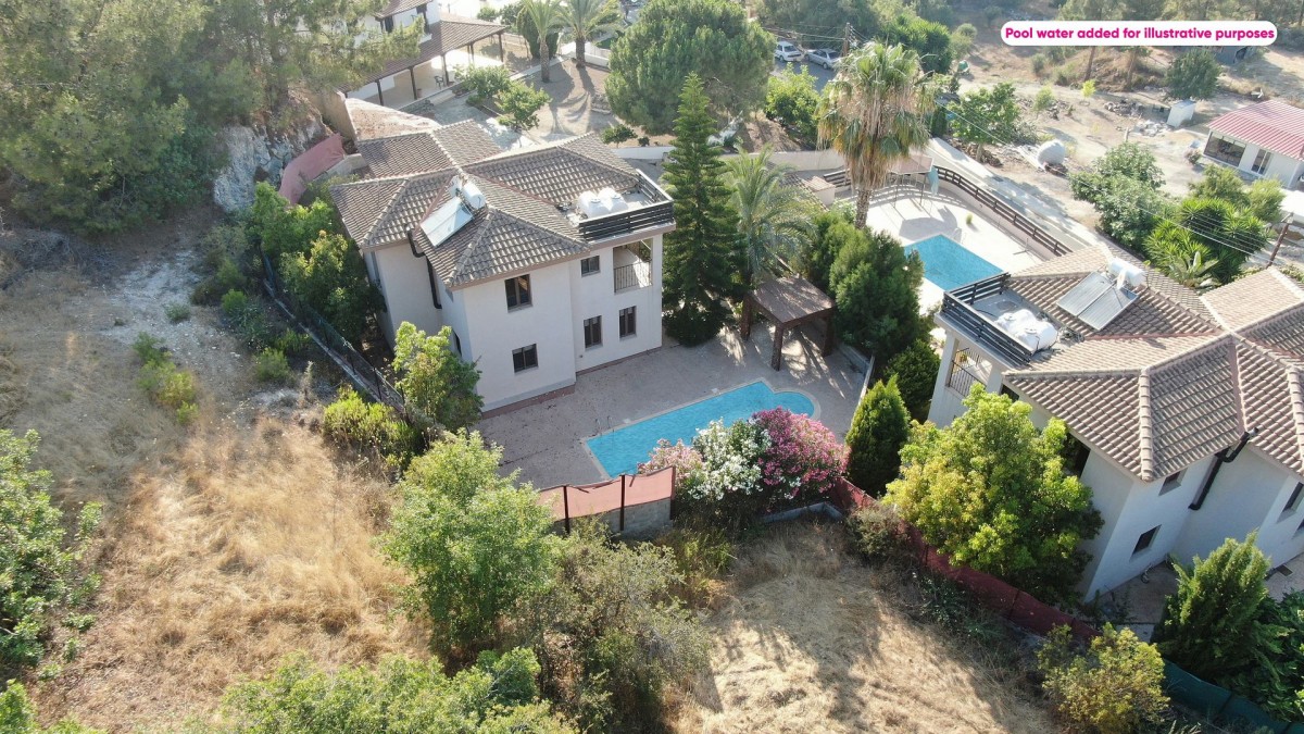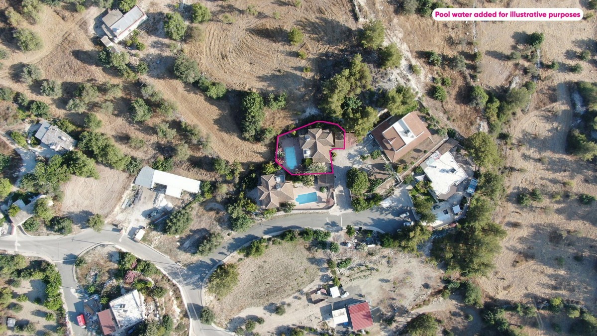 The property in question is a house comprising of a living room, a kitchen with a dining area in an open-plan space, a shower room with a toilet, one bedroom, and terraces on the ground floor. The first floor, comprises of a bathroom, three bedrooms (of which the master bedroom is en-suite), and terraces. Externally the house offers a swimming pool, parking space, a garden, and a small storage room.