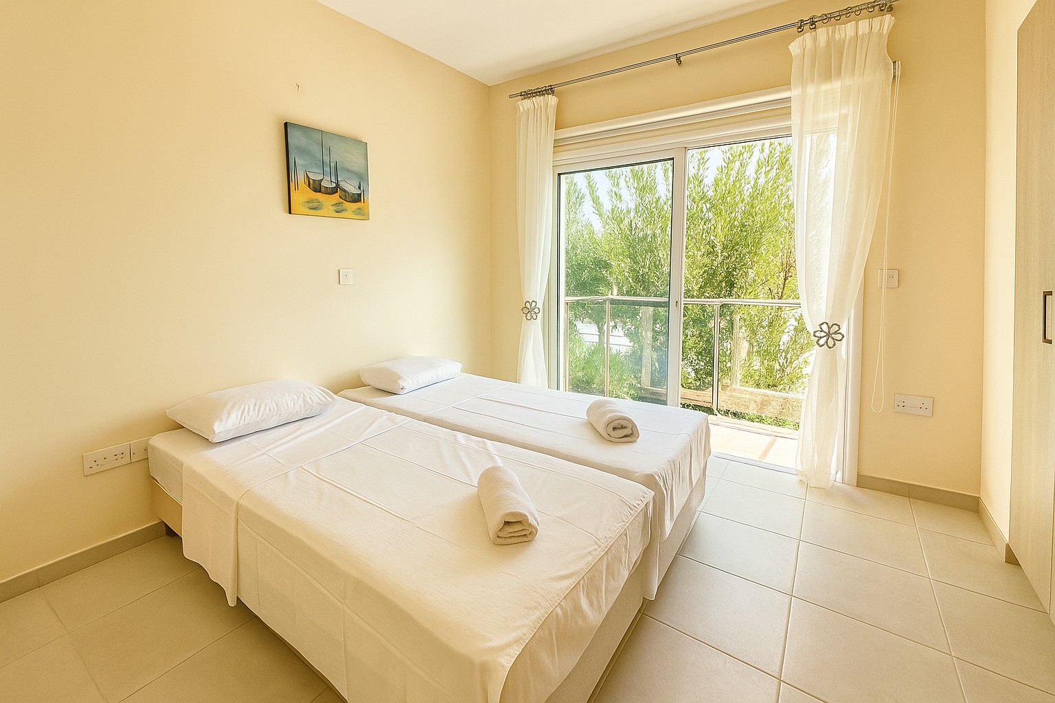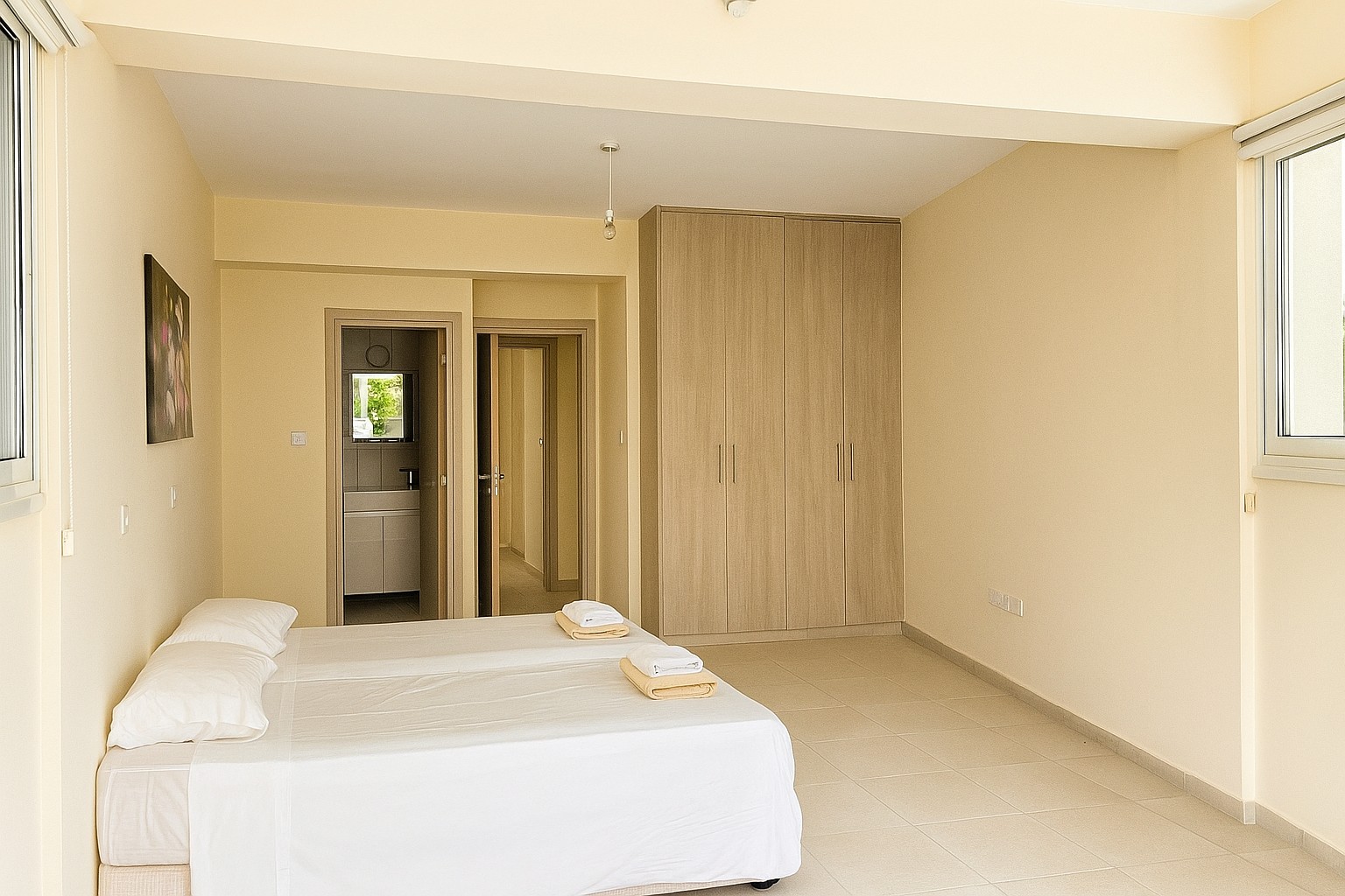 than 1 km from the vibrant centre of Paphos. All essential amenities are within 200 meters, including supermarkets, shops, cafes, restaurants, gyms, banks, and pharmacies,