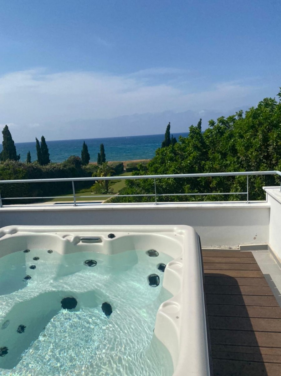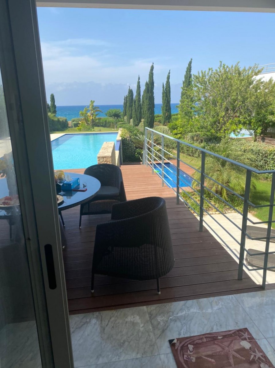 This stunning front line villa is situated in the picturesque area of Neo Chorio, just meters away from the crystal clear waters of the Mediterranean Sea.