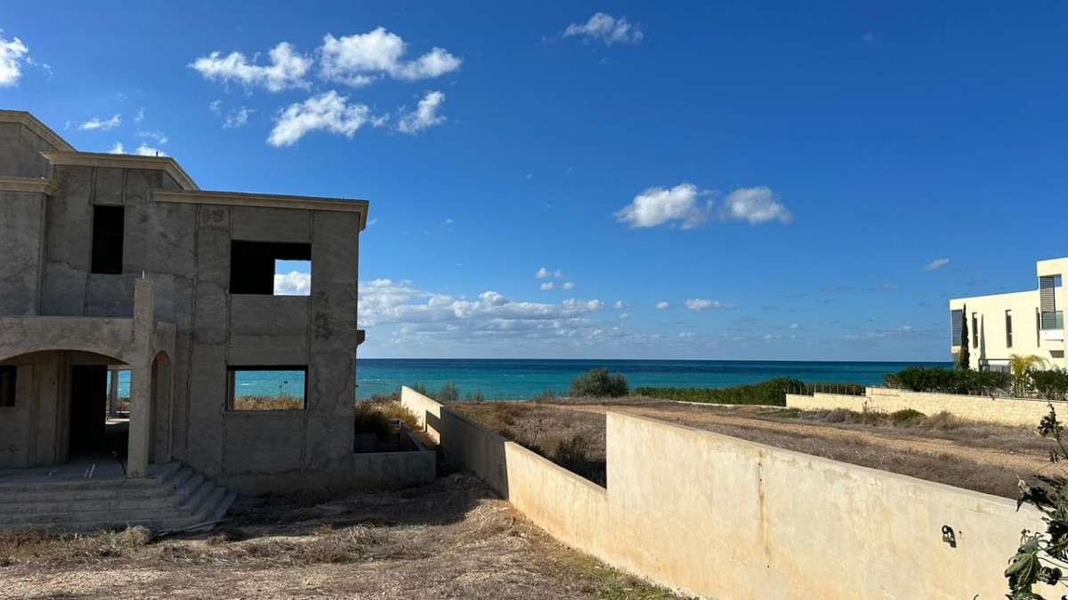 The property for sale is an incomplete 7-bedroom seaside two-storey house in Sea Caves, Pegeia.