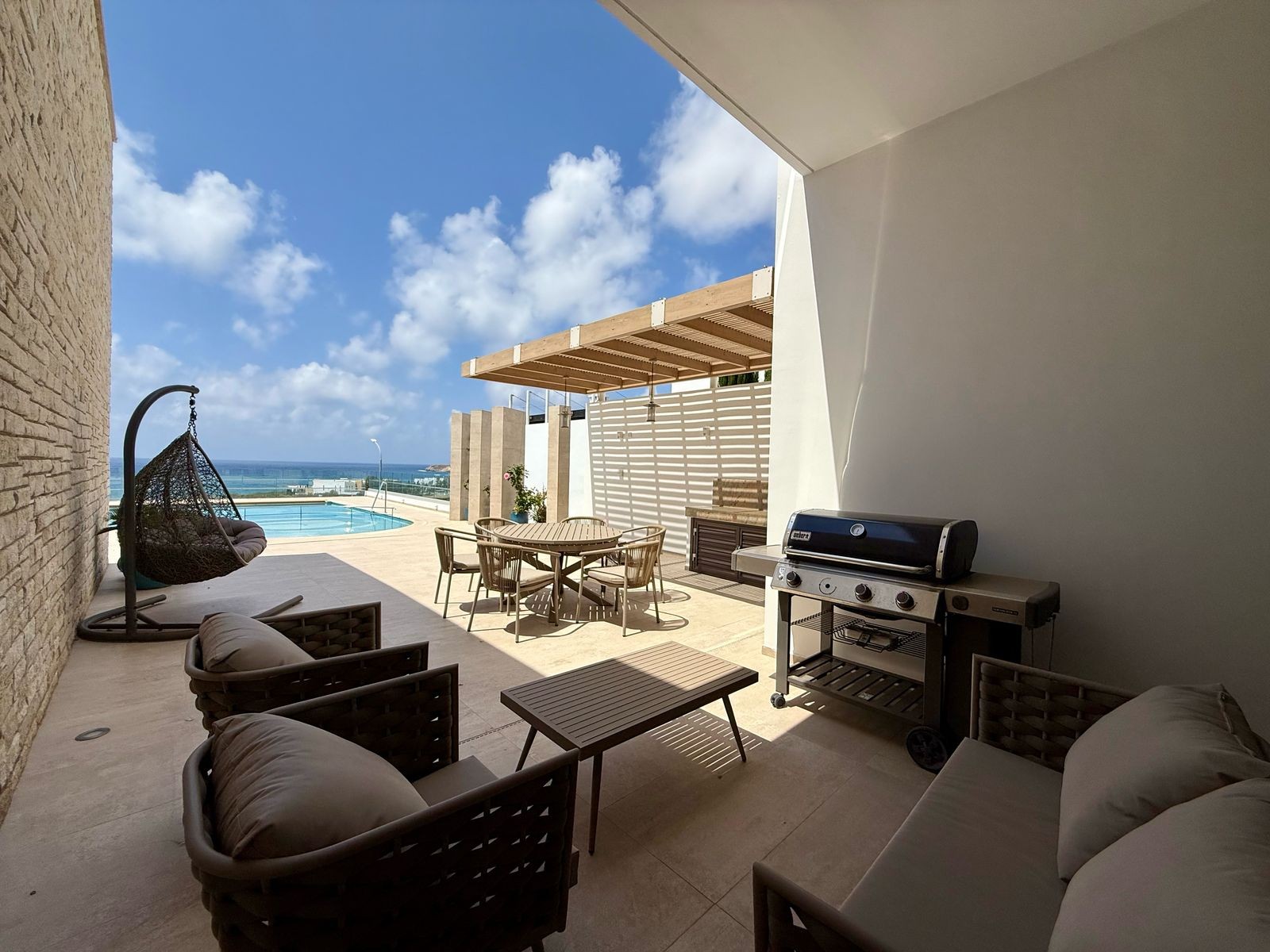 The spaciousness of this home is evident from the moment you enter the property. The beautifully landscaped private mature garden and the swimming pool offer unobstructed views of the sea and BBQ area.