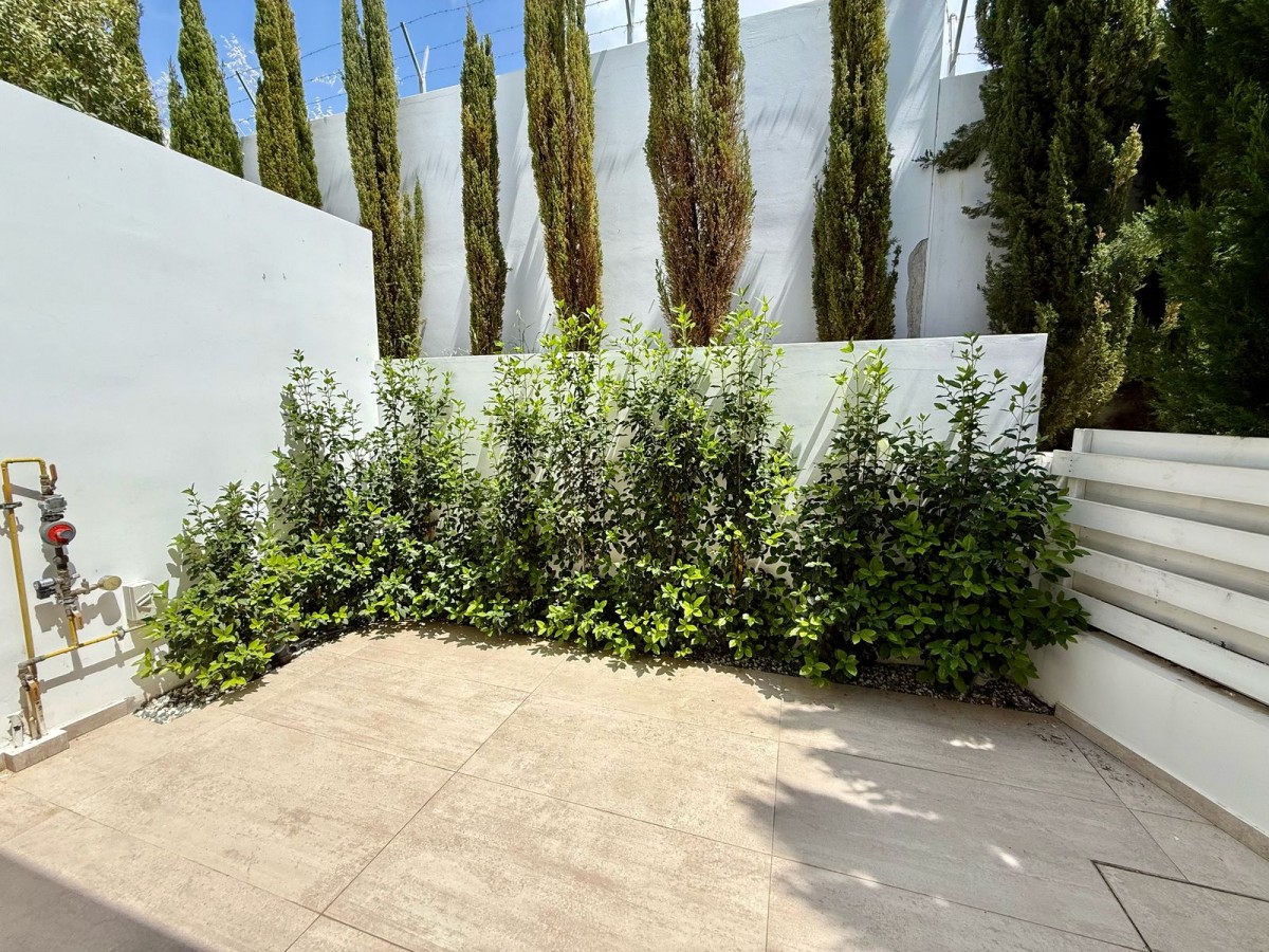 The ground floor of the villa consists of a spacious living area with dining area, separate kitchen area, laundry room, a guest toilet, one bedroom with an en-suite shower, and an extra room that can function as an extra bedroom/office with en-suite shower. The first floor has two impressively large bedrooms with en-suite shower'/ bathroom and walking wardrobe. Both bedrooms have immediate access to terraces and views of the garden, pool, and the sea.