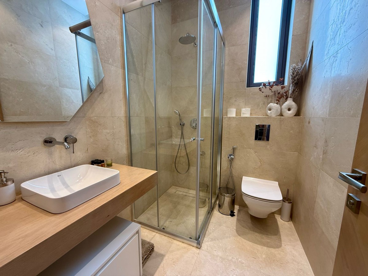 This striking, modern, spacious 4-bedroom house of 271sq.m. on a flat plot of 933 sq.m. is built with the highest standards, featuring luxury finishes, marbles, smart lighting, VRV air-conditioning system, underfloor heating and will be fully furnished with luxury Italian furniture and top-of-the-line appliances. Fusing elegant design with the clever use of natural light, volume and space.