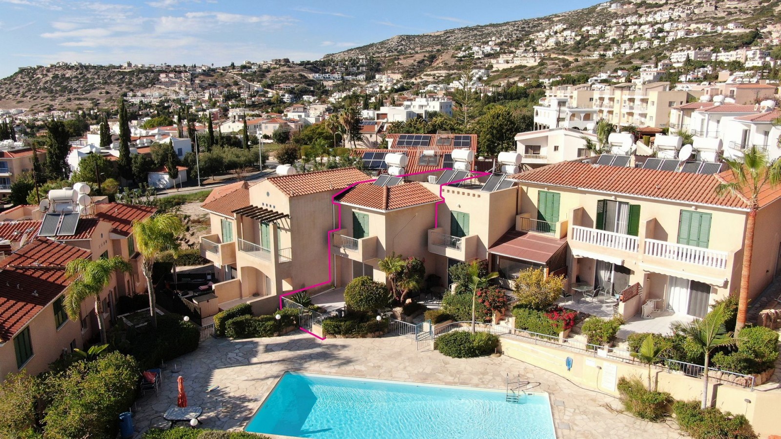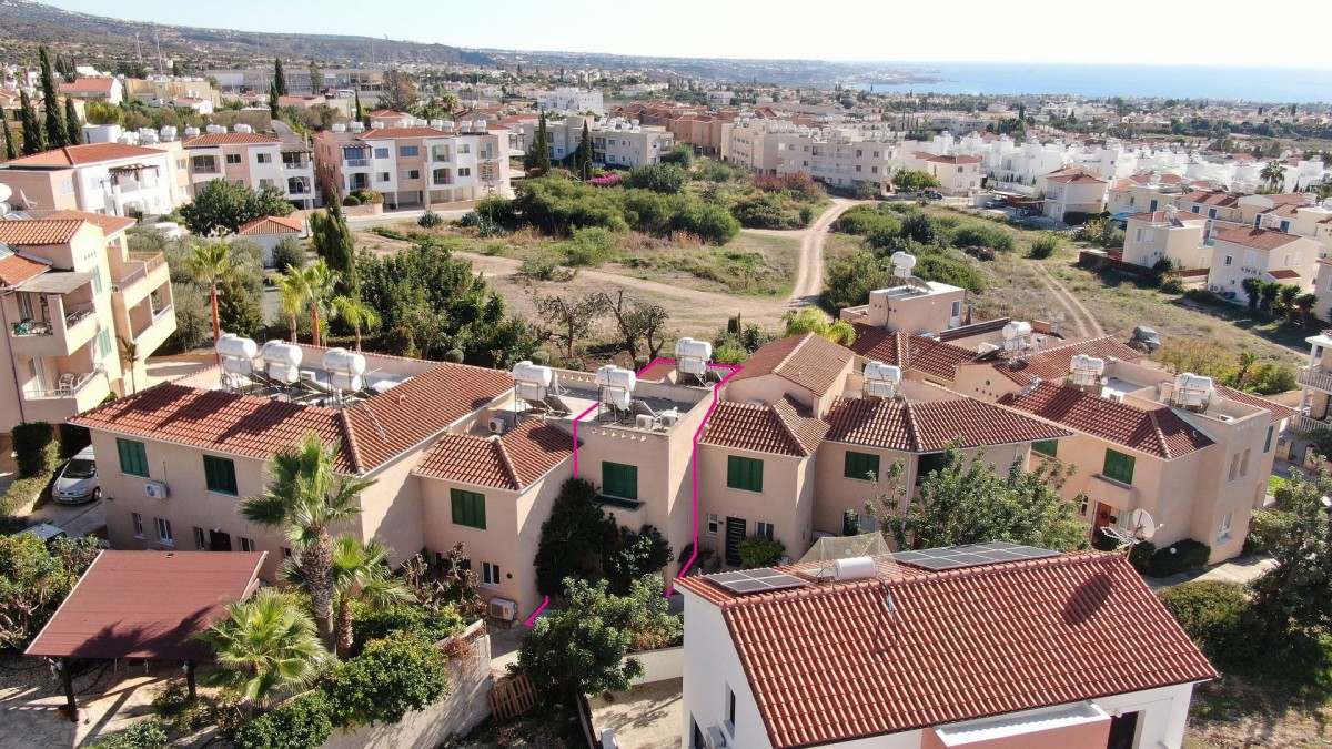 Semi-detached two storey house located in a complex known as 'Andrea Gardens in Pegeia Paphos. The property under question is a townhouse with Door no. 3 in Block 2. The ground floor is comprised of an open plan living room / dining room, a kitchen, a guest W/C and a terrace. The first floor is comprised of 2 bedrooms , a bathroom and one terrace.