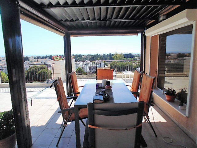 This property is in excellent condition. The penthouse is custom build and benefits from Luxury fitting and furniture, wooden floor in the living area, double glazed windows, alarm –security system, fire alarm system, electric shutters, A/C throughout, fly screens, solar panels for electricity and the water, BBQ area, large approx.200 sq.m verandas and private covered parking for 3 cars.