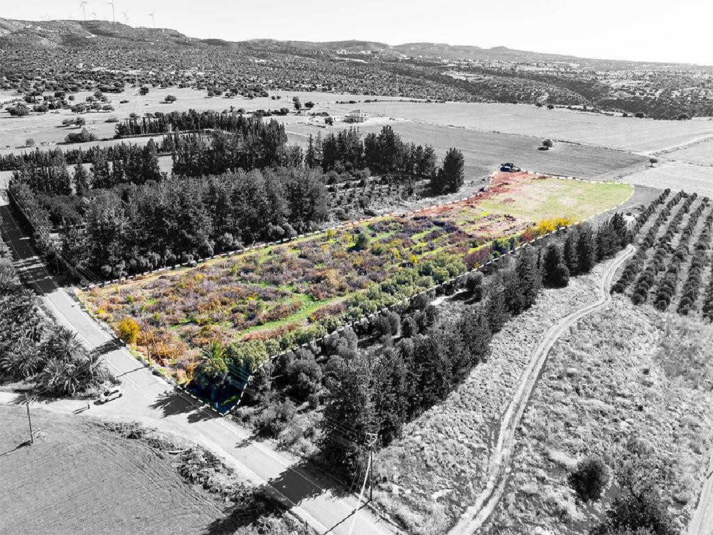 The fact that the property enjoys a partial view is considered as an advantage. In addition, the low building density factor is a guarantee for an organized residential development. The property is suitable for plot division or for a unified residential development and it is considered as an ideal choice for a land developer. The field has fertile soil and is cultivated with various citrus trees.