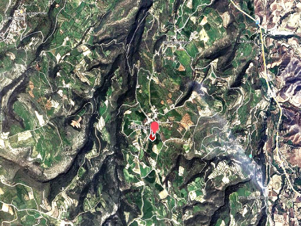 Residential field in Pano Akourdaleia community of Paphos district. It is situated at a distance approximately 160 meters south of the church of Agia Paraskevi and approximately 560 meters northwest of the church of Agios Simeon.