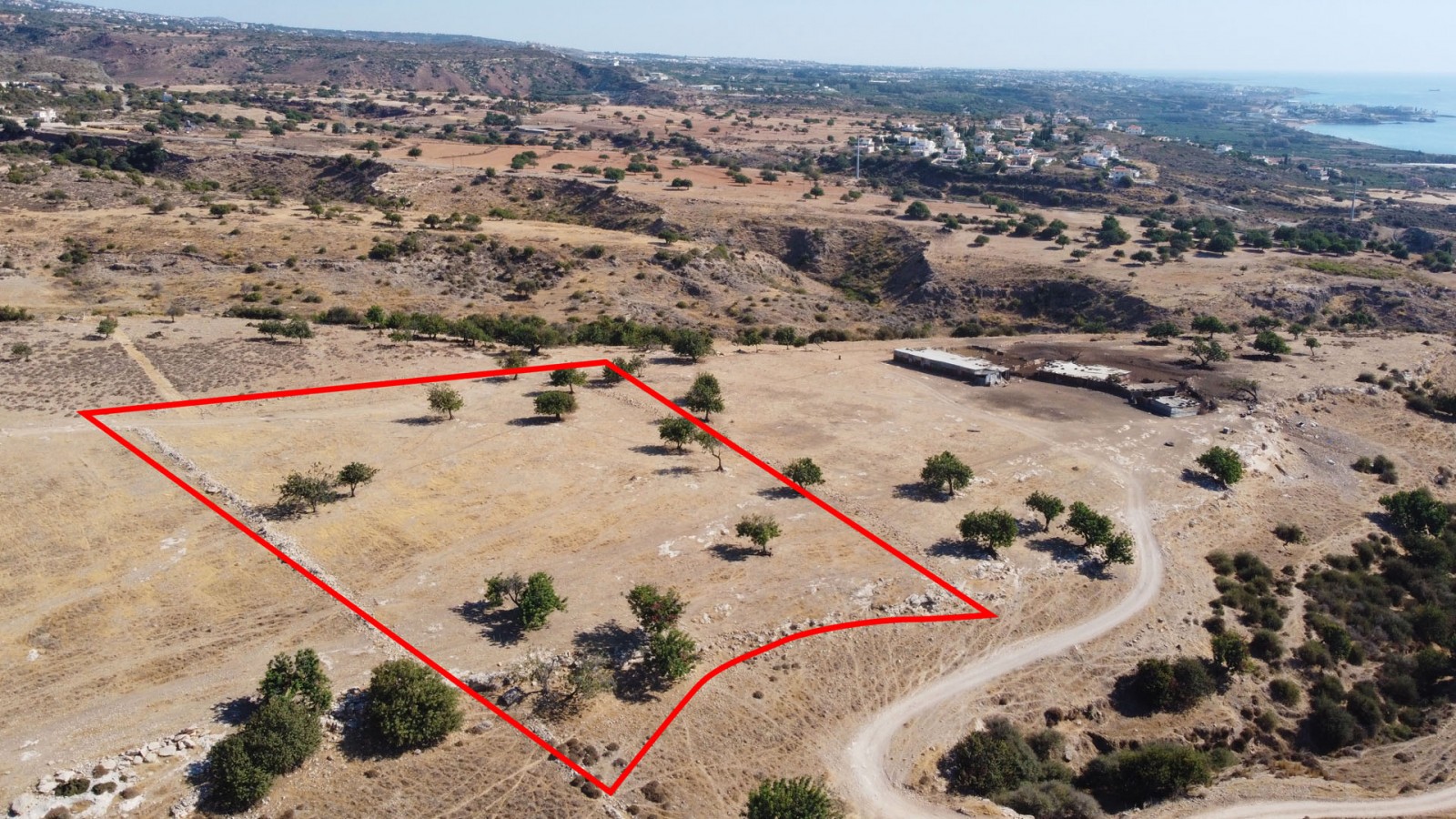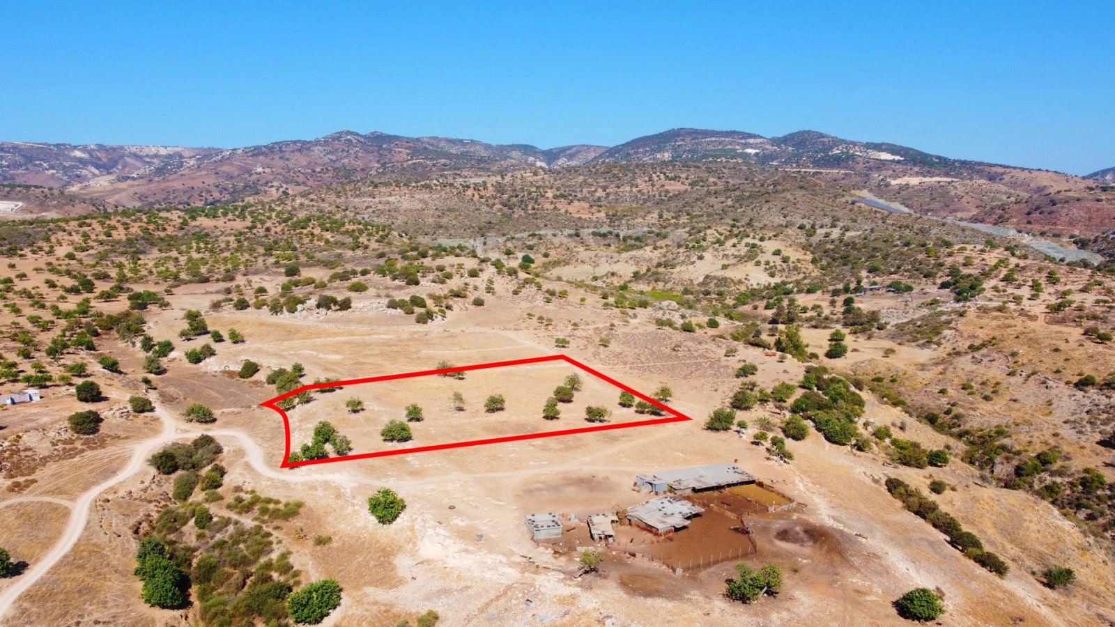 The property is a field in Pegeia, Paphos. It is located 1.3km north of St. George avenue, 1.75km northwest of Mavrokolymbos Reservoir. The field has an area of 12,993sqm, an uneven surface and an irregular size and is located approx. 400m north of the nearest road. The immediate area consists of residential and agricultural land and individual residences.