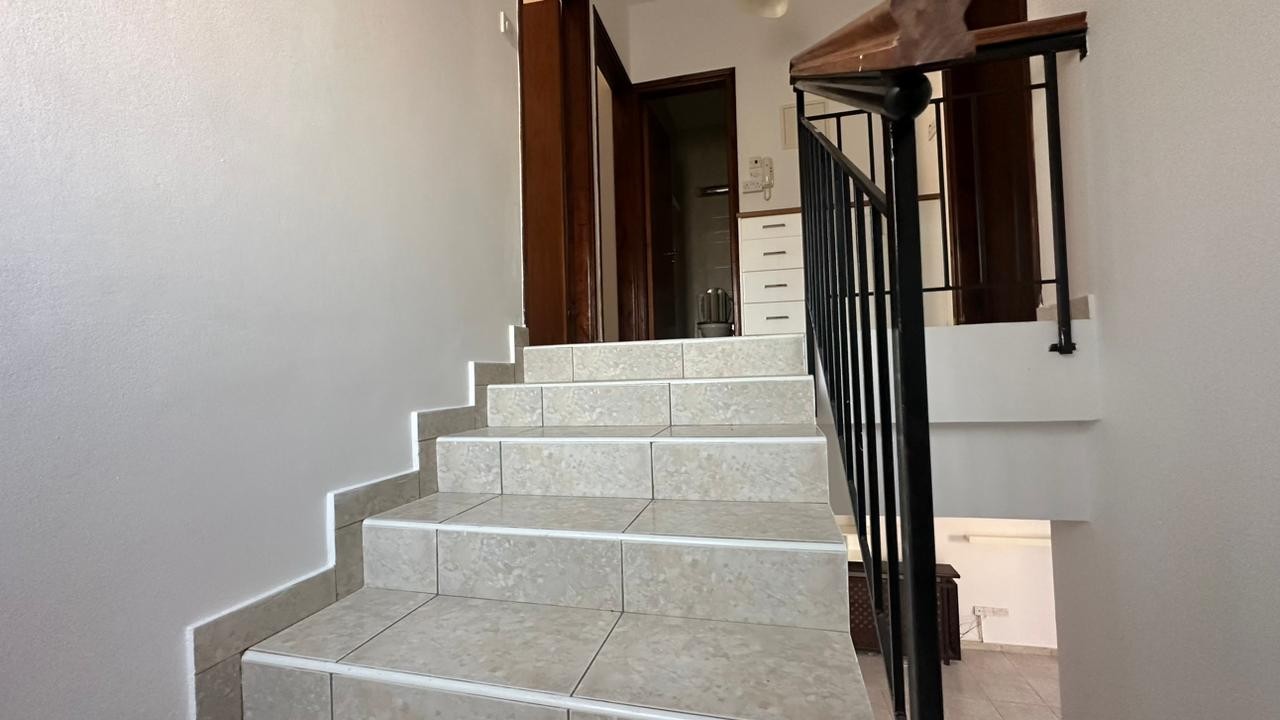 Interior the house comprises on the ground level, one living area and one very spacious open plan living & dining area. The kitchen is partly separated, fully fitted and equipped and has a direct access to a large paved veranda. On the same level there is and guest w/c.