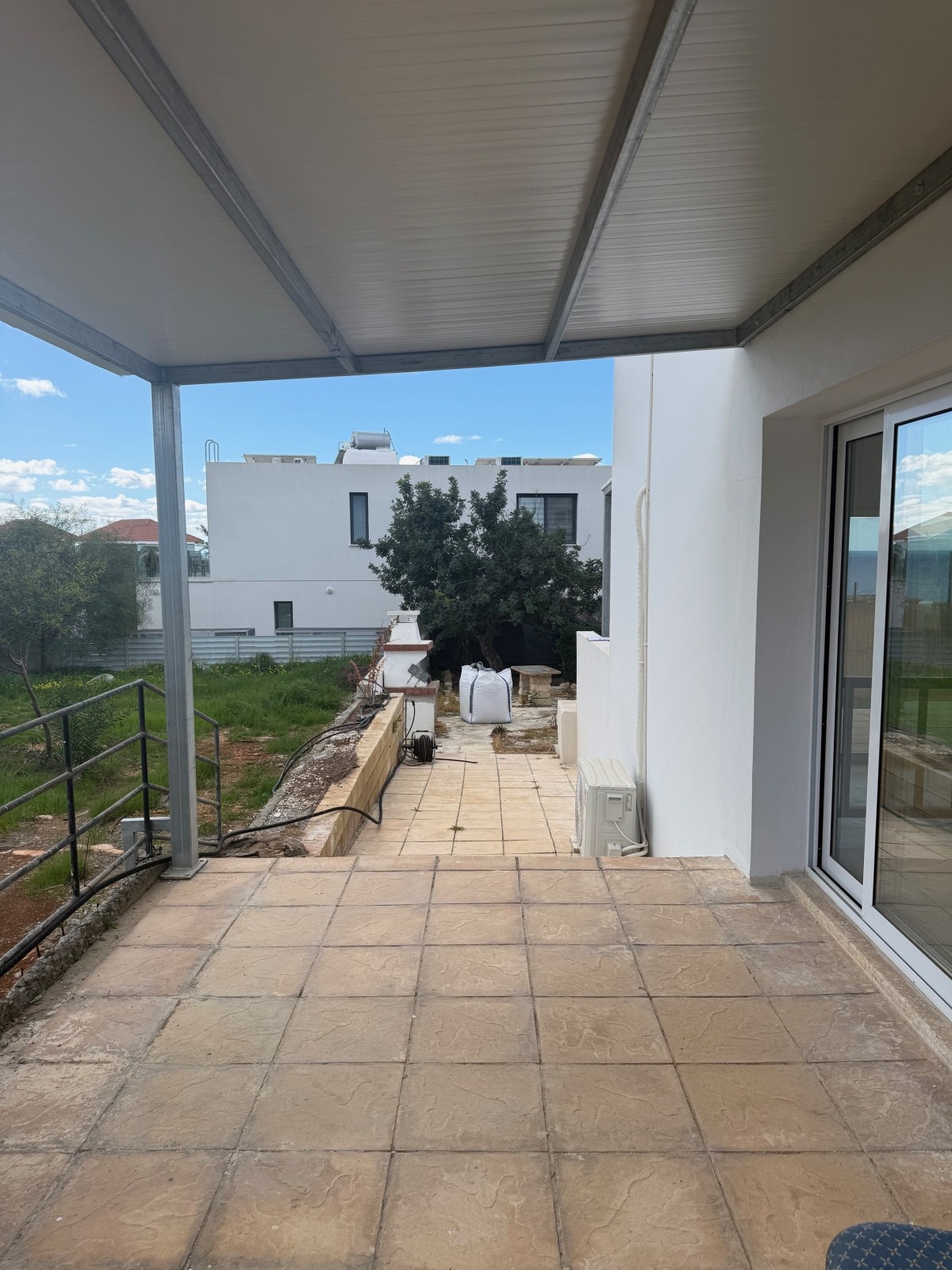 All rooms are equipped with air conditioning units, ensuring comfort throughout the year. Externally, the property benefits from a private yard and two covered parking spaces.