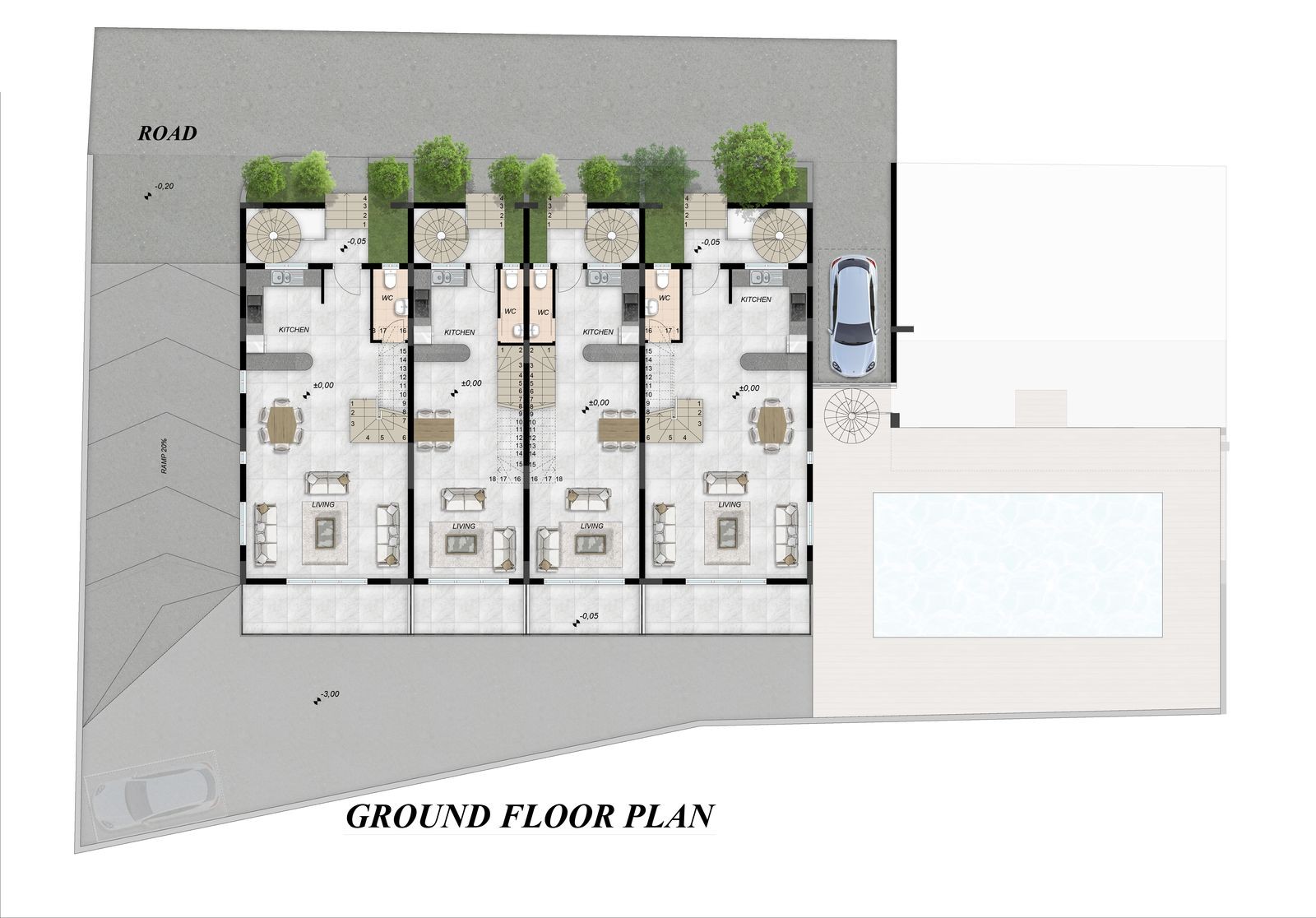 The property is located in a quite area very close to the center of Pafos Town. Their central location offers easy access to all amenities and services, blue flag beaches, hotels and resorts, international golf courses, entertainment venues and shopping malls.